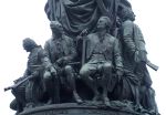 Бронзовая фигура Екатерины Второй, изваянная скульптором Чижовым, красиво завершает композицию монумента. Правда, есть некоторое противоречие между правдивыми изображениями исторических деятелей и явно идеализированной статуей императрицы.